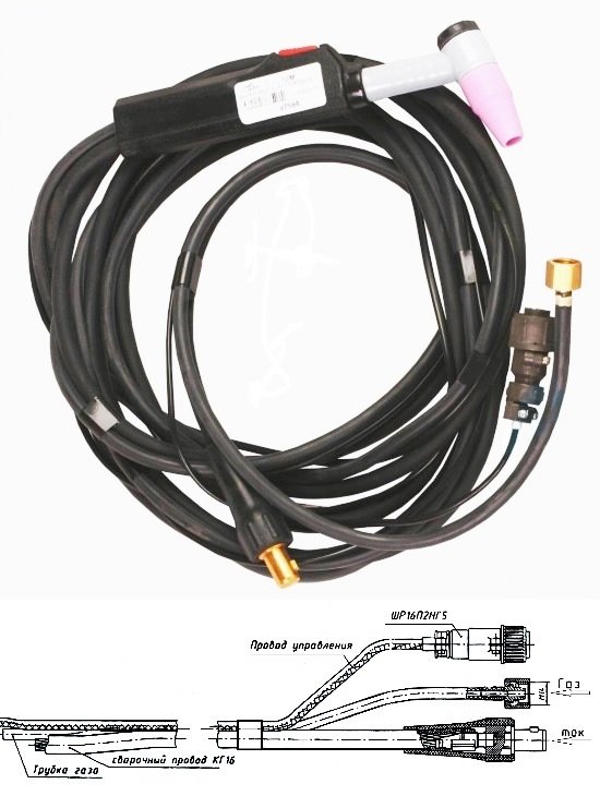 Подвод защитного газа (аргона) и сварочного тока осуществляется раздельно.