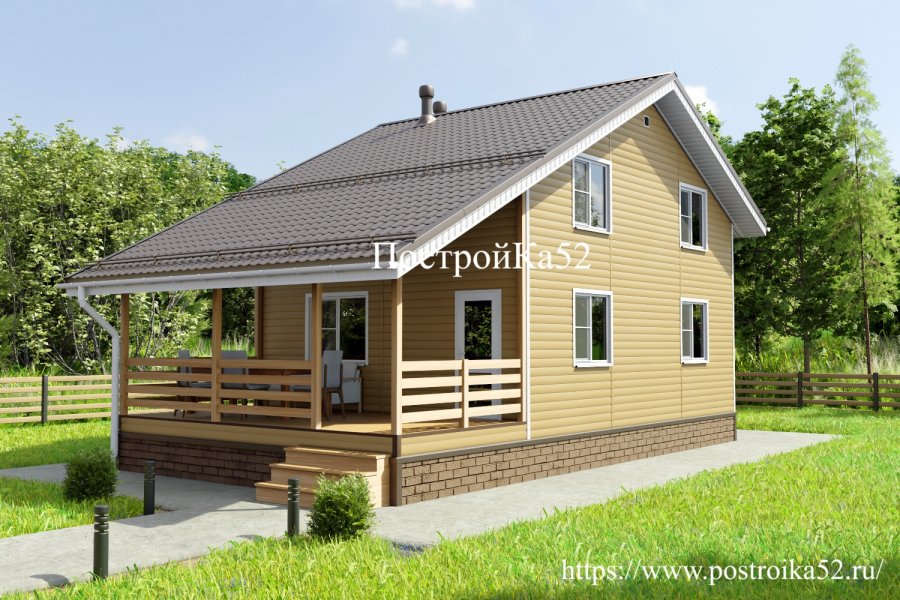 Проект каркасного дома 6х8 полтора этажа Кремёнки35 в Нижнем Новгороде. Каркасный дом с террасой.
