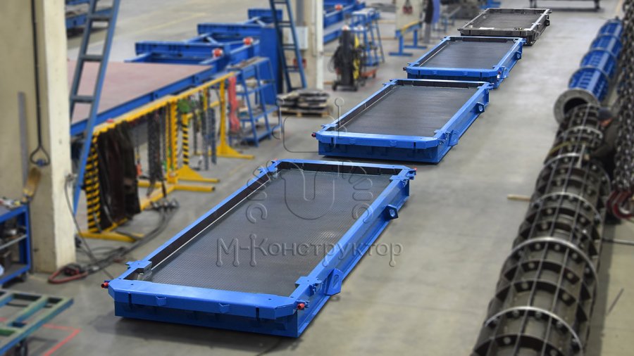 Компания "М-Конструктор" изготавливает два типа металлоформ для производства плит ПАГ: формы с четырьмя открывающимися бортами и матричные формы, в которых открываются только торцевые борта и петлеобразователи. И те, и другие соответствуют государственному стандарту.