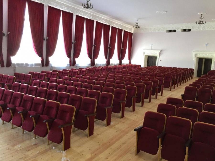 Установка карнизов и электрических карнизов на окна и для одежды сцены.