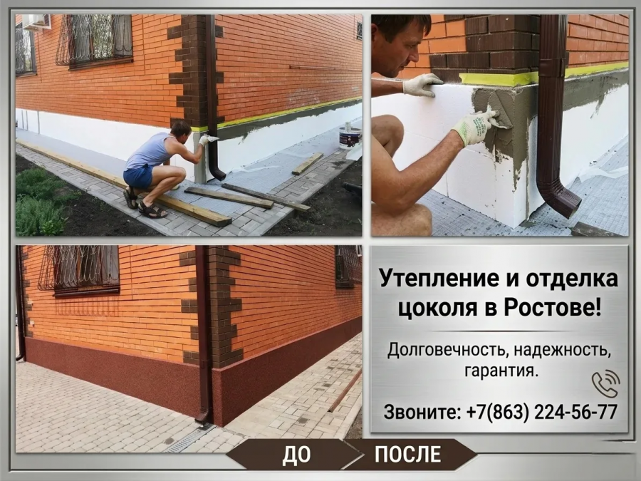 Произведем отделку цоколя декоративной штукатуркой. При необходимости произведем демонтажные и подготовительные работы.