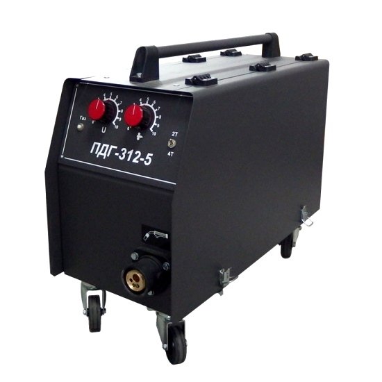 ПДГ-312-5 - является подающим механизмом закрытого типа с 2-х роликовым редукторным приводом CWF 3110, кассетой для сварочной проволоки, тормозным устройством, платой управления и электромагнитным клапаном. На лицевой панели располагается система управления полуавтоматом: регуляторы тока и скорости подачи сварочной проволоки.