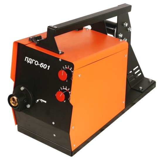 ПДГО-601 - подающий механизм полузакрытого типа с 6-ти роликовым редукторным приводом, кассетой для сварочной проволоки, тормозным устройством, платой управления и электромагнитным клапаном. На лицевой панели располагается система управления полуавтоматом: регуляторы тока и скорости подачи сварочной проволоки, технологических временных интервалов.