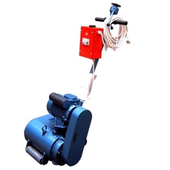 Перемещение машины в процессе работы осуществляется с помощью наклонной стойки с рукоятками, на которой установлен пульт и механизм регулировки глубины строгания.