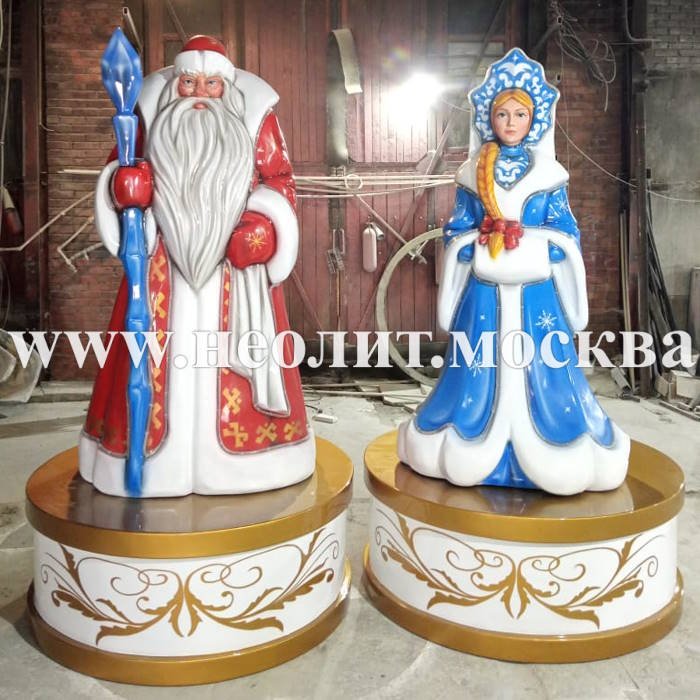 Парковая композиция Снегурочка и Дед Мороз без подсветки на подиумах 270 см из сстеклопластика В НАЛИЧИИ