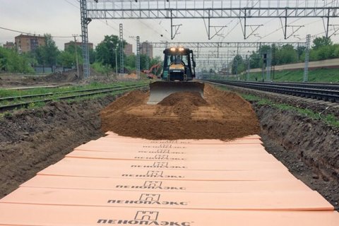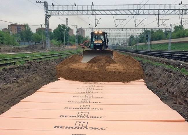 Одним из ключевых направлений нового стандарта стало внедрение технологий термостабилизации земляного полотна с использованием теплоизоляционных плит из XPS. Материал обладает низкой теплопроводностью, высокой прочностью, минимальным водопоглощением и устойчивостью к циклическим нагрузкам — это делает его идеальным решением для железнодорожного строительства. Материал предотвращает деформации пути, вызванные морозным пучением и оттаиванием вечной мерзлоты — серьезными проблемами в российских условиях.