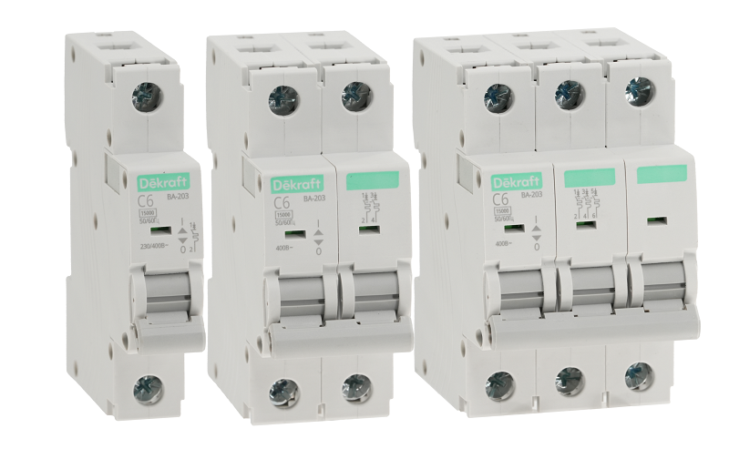 Российская компания «Систэм Электрик» (Systeme Electric), специализирующаяся на разработке и производстве оборудования для распределения электроэнергии и систем автоматизации, объявляет о выводе на рынок модульных автоматических выключателей серии ВА-203 под брендом Dekraft. В линейку вошли устройства на номинальные токи от 6 до 100 А с предельной коммутационной способностью (Icu) 15 кА.