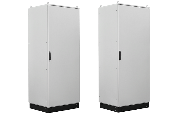 Шкафы сделаны из листовой стали с порошковой покраской в цвет RAL7035. Конструкция каркаса сборная и выполнена из профиля специальной формы и сварной рамы, что поддерживает его дополнительную жесткость и оптимальное место при хранении и транспортировке в разобранном виде. Перфорация с шагом 25 мм обеспечивает универсальность монтажа внутренних комплектующих.