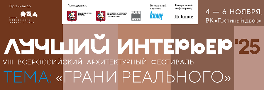 VIII Всероссийский архитектурный фестиваль «Лучший интерьер» пройдет с 4 по 6 ноября в московском Гостином дворе одновременно с международными архитектурными событиями «Зодчество 2025» и «Наша Школа 2025».