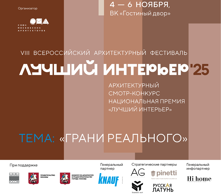 Всего один день остаётся до открытия VIII Всероссийского архитектурного фестиваля «ЛУЧШИЙ ИНТЕРЬЕР». В этом году он по традиции пройдёт в московском Гостином дворе – на одной площадке с XXXIII Международным архитектурным фестивалем «Зодчество. Россия» и IX Международным архитектурным фестивалем «НАША ШКОЛА».