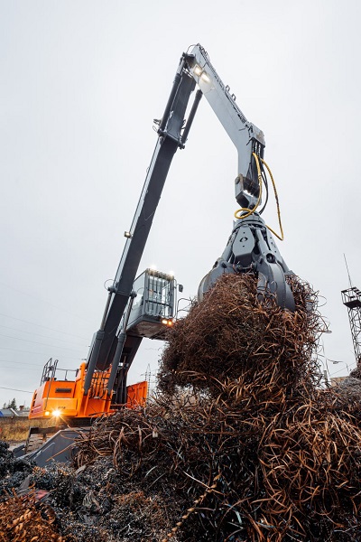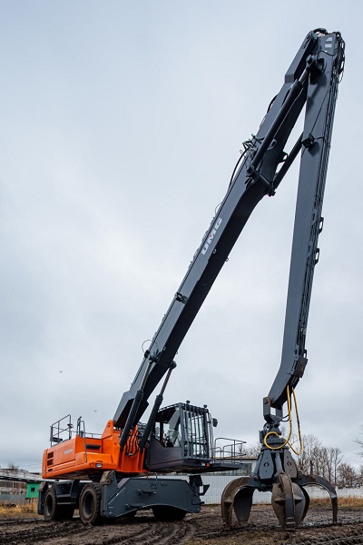 - Универсальность: Машина предназначена для работы с сыпучими материалами, металлоломом и древесиной. Доступен широкий спектр сменного оборудования: грейферы разных объемов (0,8–1,5 м³), бревнозахват с ротатором и магнитная шайба. Конструкция адаптирована для установки магнитного гидравлического генератора.