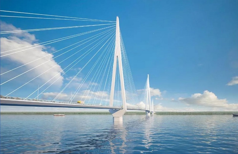 Спроектированный как вантовый мост, объект будет поддерживаться тремя мощными пилонами, высота которых составит от 194,5 до 284,5 метров. Общая длина самого мостового перехода достигнет 4,6 километра. Если же учитывать два подъезда к нему, то совокупная протяженность новой автомобильной дороги составит 14,5 километров.