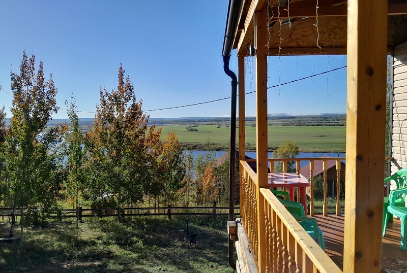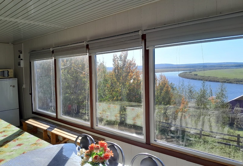 На полученном участке был построен утепленный гостевой дом с панорамными окнами и видом на реку, рассчитанный на круглогодичное использование.