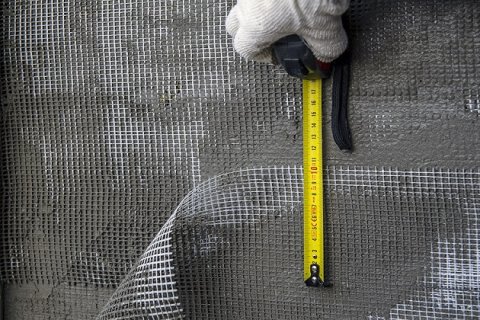 Чтобы избежать трещин в угловых зонах оконных и дверных проемов производится усиление теплоизоляционного слоя. Углы укрепляют сеткой размером 200х400 мм по плоскости, а внешние углы – угловыми профилями. На поверхность плит каменной ваты наносят клеевой раствор, перед этим загрунтованный клеем. В нанесенную смесь утапливают профиль и основной армирующий слой – стеклосетку, которую необходимо размещать внахлест не менее 100 мм. Время полного высыхания конструкции – не менее 72 часов. Только после этого можно приступать к шлифовке неровностей и грунтовке грунтующими составами.