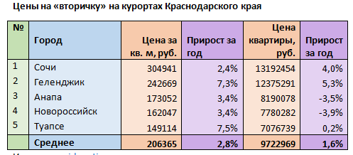 - Наименьший рост: Сочи (+2,4%).