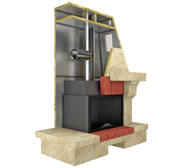 - Теплоизоляции каминов, бытовых печей и дымоходов.