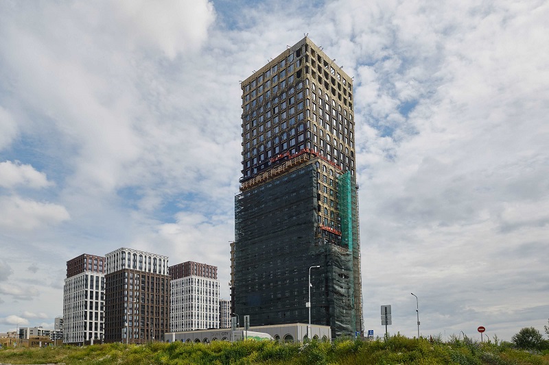 На секциях 2, 3 и 4 также продолжаются монтажные работы по фасаду. Строители монтируют белоснежные алюминиевые композитные панели и выполняют затирку швов. Кроме того, во второй секции ведется монтаж лестничного ограждения, а в третьей и четвертой секциях — укладка керамической плитки на лестничных клетках.