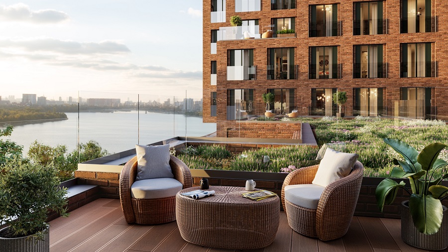 «Cliff — это скульптура из камня, скалы, обтесанные ветром с воды. За счет сложной формы и ее многоступенчатости, практически все квартиры имеют вид на воду. В перепадах формы образуются террасы. Мини-оазисы. Что напоминает южную архитектуру у воды. Можно распахнуть створки окон в пол, и вид уже у тебя в квартире», — комментирует архитектор бюро «Меганом» Юрий Григорян.
