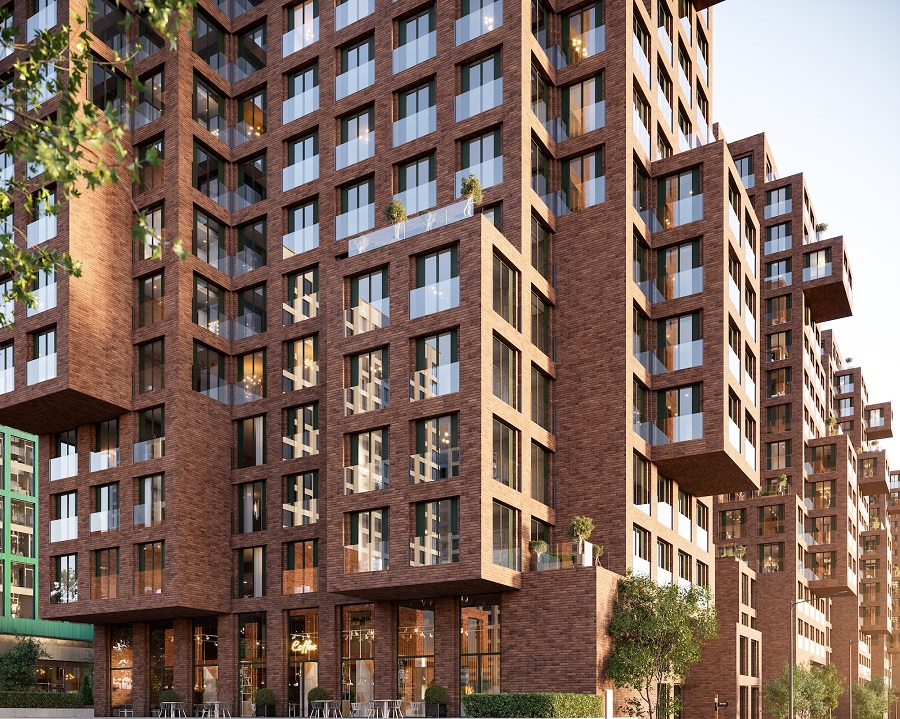 Простота и элегантность фасадов отражают идею экологичного окружения и соприкосновения с природой. В качестве основного материала фасадов используется кирпич ручной формовки насыщенного темно-рыжего оттенка. Его теплая расцветка вызывает ассоциации с песчаными плато и красными скалами, а также создает атмосферу комфорта и защищенности. Рамы больших окон добавляют динамики и гармонично соединяют архитектуру с зеленью внутренних дворов и частных террас. Пространство между корпусами, арочные проходы и выступающие эркеры создают сложную геометрию, наполненную воздухом, светом и тенью.