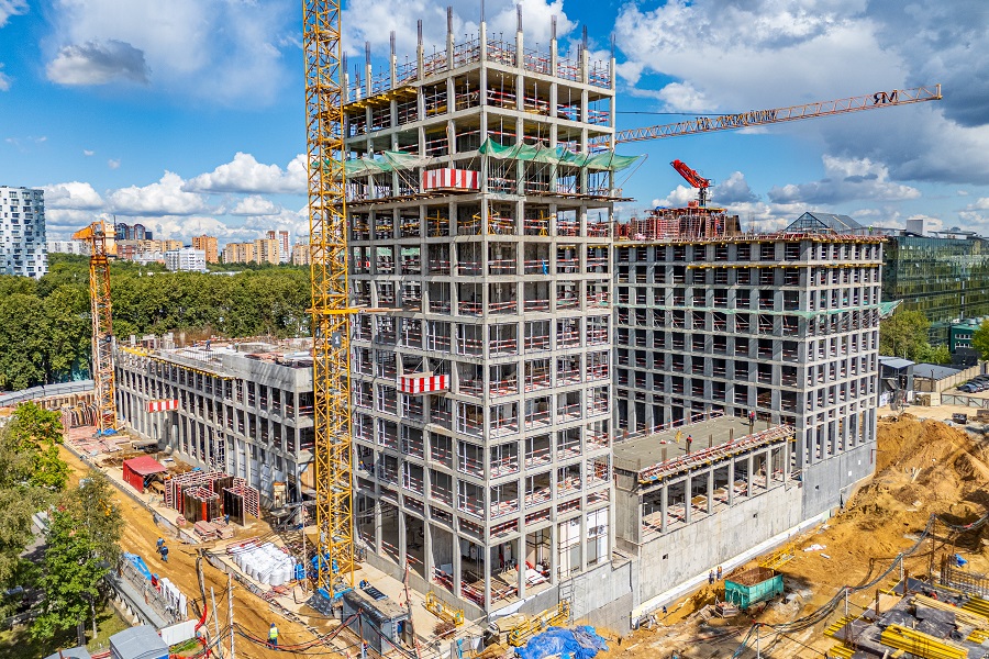На строительной площадке жилого квартала SET сохраняются высокие темпы реализации проекта. Он возводится девелопером MR в Можайском районе Москвы. Свыше 500 специалистов работают на площадке первой очереди. В месяц строятся пять-шесть этажей, что соответствует утвержденному графику. Для проведения монолитных работ уже использовано 34,5 тыс. кубометров бетона — более половины от запланированного объема.