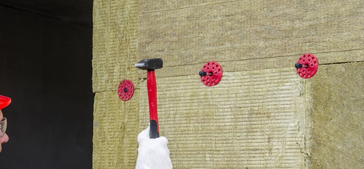 Согласно ГОСТ 33739-2016 «Системы фасадные теплоизоляционные композиционные с наружными штукатурными слоями», в СФТК можно использовать три типа крепления теплоизоляционного материала, в том числе минеральной ваты: клеевое, механическое и комбинированное. В последнем, помимо клея, минвату фиксируют с помощью тарельчатых анкеров, которые состоят из дюбеля и распорного элемента. Этот вид монтажа считается более надежным и активно применяется в промышленно-гражданском строительстве.