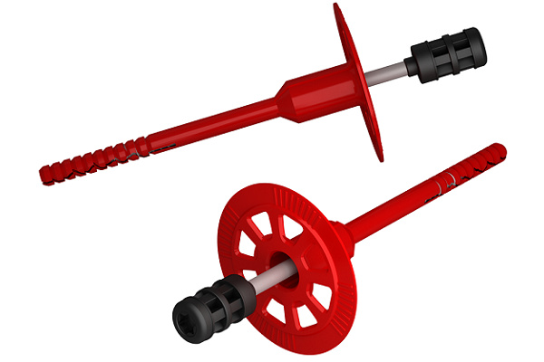 Ключевой элемент крепления минеральной изоляции в системе штукатурного фасада – забивной дюбель. Он практически идентичен как для полнотелых оснований (бетон, полнотелый кирпич и т.п.), так и для пустотелых (газобетон, керамический блок, пустотелый кирпич и т.п.). В обоих случаях важен материал, из которого выполнена эта деталь. Он должен быть прочным, износостойким и устойчивым к температурным колебаниям, в том числе способен выдерживать морозы и не охрупчиваться. Лучше всего в таких системах показывает себя полиэтилен. Он отличается пластичностью, ударной вязкостью и стойкостью к высоким и низким температурам. Дюбели из полипропилена, а также из комбинированного пластика с добавлением вторичного сырья выбирать не рекомендуется. Такие составы более твердые и жесткие, подвержены механическому старению при воздействии ультрафиолета и кислорода. Это приводит к разрушению как в процессе эксплуатации, так и непосредственно при установке – от ударов молотком.